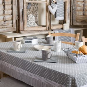 Wzory inspirowane naturą i subtelny motyw serca sprawiają, że obrus Montmarte zachwyca prostotą i klasą. Mimo delikatnej kolorystyki potrafi stać się prawdziwą ozdobą stołu – dyskretną, a jednak przyciągającą wzrok.