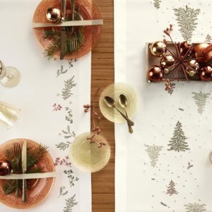 Mały obrus świąteczny z haftem na Boże Narodzenie w kolorze czerwonym i śmietankowej bieli. Jakość Premium made in Germany: materiał uszlachetniony haftem maszynowym. Miło wyhaftowane jodły wśród małych, rozproszonych gwiazdek i gałązek wyczarują świąteczną atmosferę w Twoim domu...