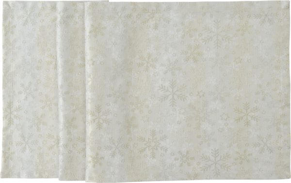 Ten oszałamiający bieżnik udekorowany jest grą imponująco lśniących płatków śniegu i gwiazd. Delikatny połysk, zimowy wzór płatków śniegu w szlachetnych kolorach srebra i szampana, to nowa interpretacja popularnych zimowych motywów. Ten wyjątkowy bieżnik urzeka swoim blaskiem, jakością i indywidualnością. Charakterystyczny i wyjątkowy.