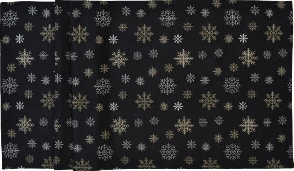 Tkanina o czarnym podłożu jest tkana złotymi nićmi w technice żakardowej. Rezultatem jest magiczna dekoracja Adwentu i świątecznych dni roku.