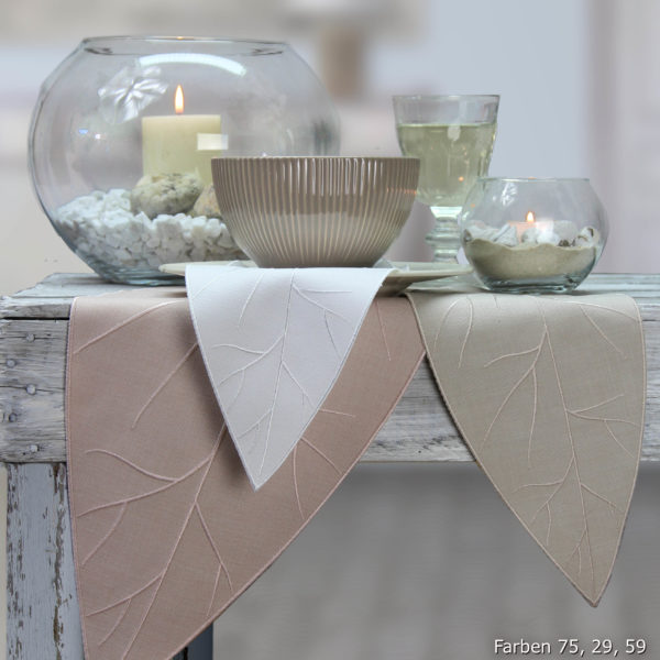 Nie zawsze musi to być klasyczny obrus, gdy zastawiasz stół dla siebie i swoich gości. Dzięki liściom FASHION możesz na przykład umiejętnie ustawić scenę dla swojego pięknego stołu i zastawy stołowej. Ale jest też wiele innych możliwych zastosowań: FASHION ozdobi Państwa kredens lub stół kuchenny, posłuży jako nowoczesna alternatywa dla tradycyjnych bieżników stołowych lub uczyni z Państwa ulubionych elementów dekoracyjnych przyciągający wzrok efekt wizualny. Wysokiej jakości seria została uszlachetniona nićmi z efektem konturowym w cenionym w Niemczech hafcie ręcznym i nada Twojemu stołowi szczególny charakter.