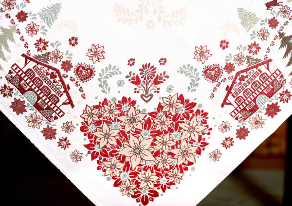 Włoski obrus ozdobny Fassa – odrobina pasji na Twoim stole ❤️ Dostępne kolory: czerwony, niebieskiSkład: 34% bawełna | 33% poliester | 33% akrylPranie: do 40°C Czasem warto odejść od klasyki i wprowadzić do wnętrza nutę świeżości. Obrus Fassa...