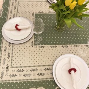Tkanina o doskonałych proporcjach bawełny, poliestru i akrylu sprawia, że obrus jest trwały, przyjemny w dotyku i łatwy w pielęgnacji. Można go prać w pralce, a jego kolory pozostają żywe przez długi czas.