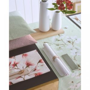 Wzory inspirowane naturą i subtelny motyw serca sprawiają, że obrus Montmarte zachwyca prostotą i klasą. Mimo delikatnej kolorystyki potrafi stać się prawdziwą ozdobą stołu – dyskretną, a jednak przyciągającą wzrok.
