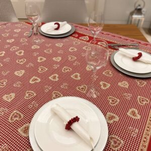 Wzory inspirowane naturą i subtelny motyw serca sprawiają, że obrus Montmarte zachwyca prostotą i klasą. Mimo delikatnej kolorystyki potrafi stać się prawdziwą ozdobą stołu – dyskretną, a jednak przyciągającą wzrok.