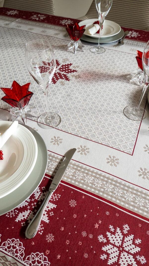 Oferujemy przepiękny obrus z zimowym motywem, który w sezonie będzie wyjątkową ozdobą stołu. Wykonany z najwyższej jakości materiału, o wysokiej gramaturze tkaniny. Obrus dostępny w dwóch kolorach: czerwonym i beżowym. Motywy płatków śniegu oraz kryształków lodu tworzą harmonijną, minimalistyczną kompozycję. Ten obrus to kwintesencja stylu skandynawskiego, na którym króluje symetria oraz stonowana tonacja kolorów.