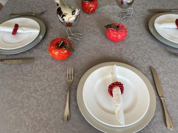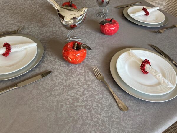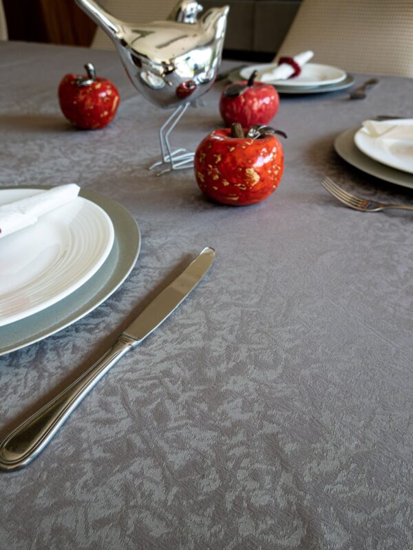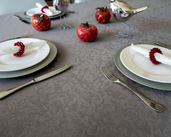 Ten wysokiej jakości obrus z zabezpieczeniem przed plamami można prać w pralce i łatwo prasować.