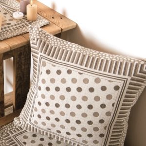 Poduszka w groszki Wymiar: 45 × 45 cm Skład materiału: 50% bawełna, 50% poliester. Groszki to wzór absolutnie ponadczasowy – zawsze modny, wdzięczny i łatwy w aranżacji. Od lat ma grono wiernych miłośników i doskonale odnajduje się w...