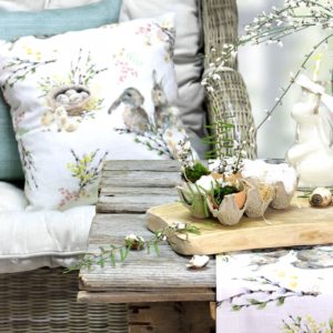 Poduszka wielkanocna SWEET RABBITS by Sander table & home. W tej grafice znajdziesz wszystko, co należy do Wielkanocy, śliczne króliki, urocze pisklęta, małe gniazda i gałązki kociaków. Brakuje tylko Twojego stołu na szczęśliwe świętowanie z najbliższymi. Dostępny rozmiar:...
